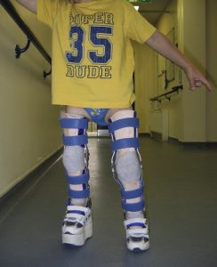Pada kasus ringan hingga sedang, terutama pada anak usia lebih kecil, penggunaan brace atau penyangga kaki seperti KAFO dapat membantu mengarahkan pertumbuhan tulang agar lebih lurus dan mencegah kelengkungan bertambah parah. Selain itu, pemantauan rutin dan pendampingan terapi juga penting untuk memaksimalkan hasil koreksi.